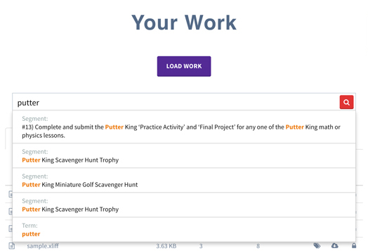 TM-Town's new search feature can be accessed directly from the Your Work page or from the new Search Your Translation Memory page.